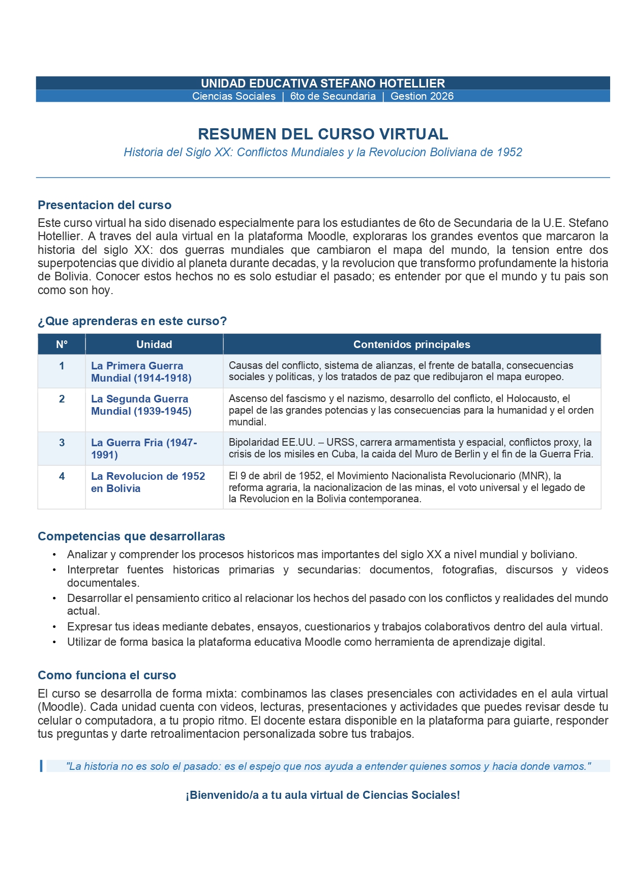 en este curso aprenderas sobre temas importantes de historia internacional, desde la primera guerra mundial, hasta la guerra fria, las causas, consecuencias y cambios que lo vivimos en nuestra actualidad.